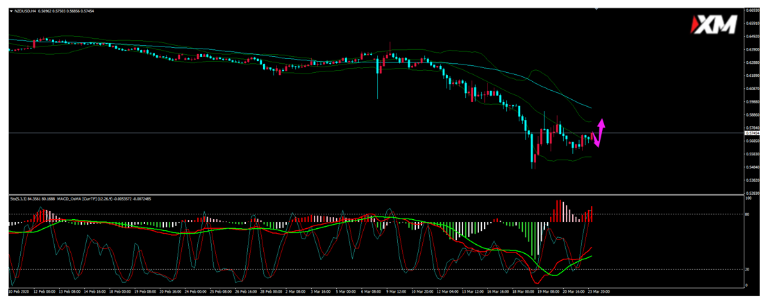 4H昨日收复0.5750一线转入震荡格局,目前短期均线偏上,MACD零轴下方金叉运行,短线面临技术性调整风险。