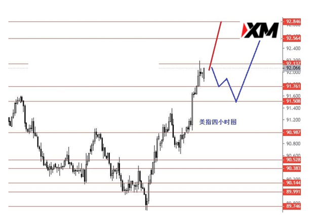 美指上周震荡上行,到达目标位92.10区域。从图形来看,整体向上反弹行情还在继续,后市重点关注91.00,在没成功跌破前,继续向上运行,测试92.80的概率较大些。今日关注是直接向上拉涨,还是会回踩后再向上。