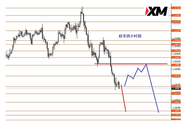 欧元上周正如预期向下运行,目标1.1900区域已到位。从图形来看,本周继续下行的概率较大些,上方重点关注1.2区域强阻力,在没上破前,看跌欧美至1.1840和1.1800区域。从今日早盘来看,欧元直接下跌的概率较大些,所以可先直接进空,摆好止损,或止损后,再关注1.2和1.2030区域强阻力的承压情况再看。今日操作建议:1.1900区域做空,止损1.1940,目标看向1.1840和1.1800区域。控制仓量,严格止损。‘