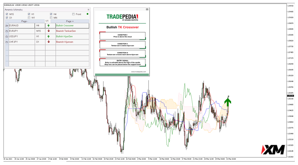 Avramis Ichimoku是一款全智能根据系统条件实时自动筛选交易信号的交易系统,让交易者随时随地只要在电脑前打开交易软件,利用自动计算筛选功能在自己偏好的交易品种上扫描交易信号,周期为M15 H1 H4 D1 W1 MN(可自定义)。