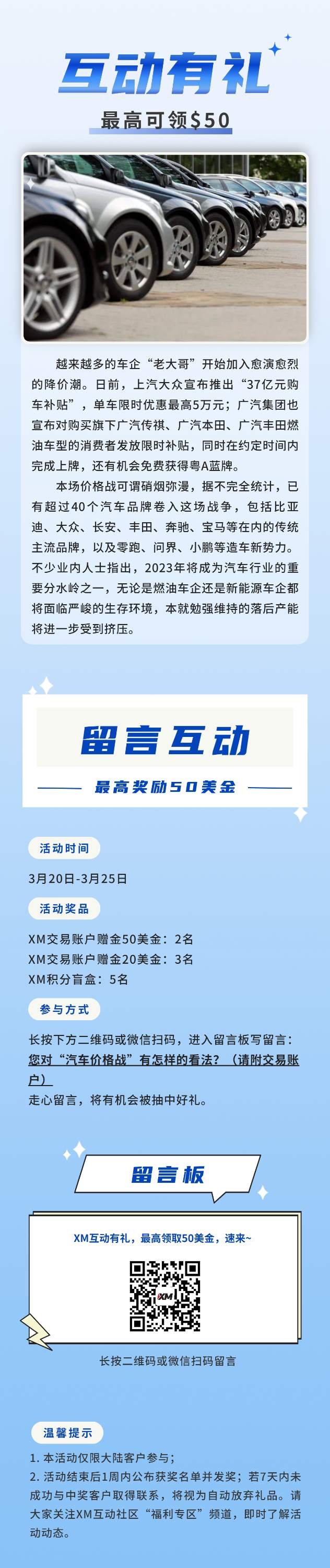 微信扫一扫海报最下方的二维码,参与XM互动留言,最高领取$50赠金,速来~