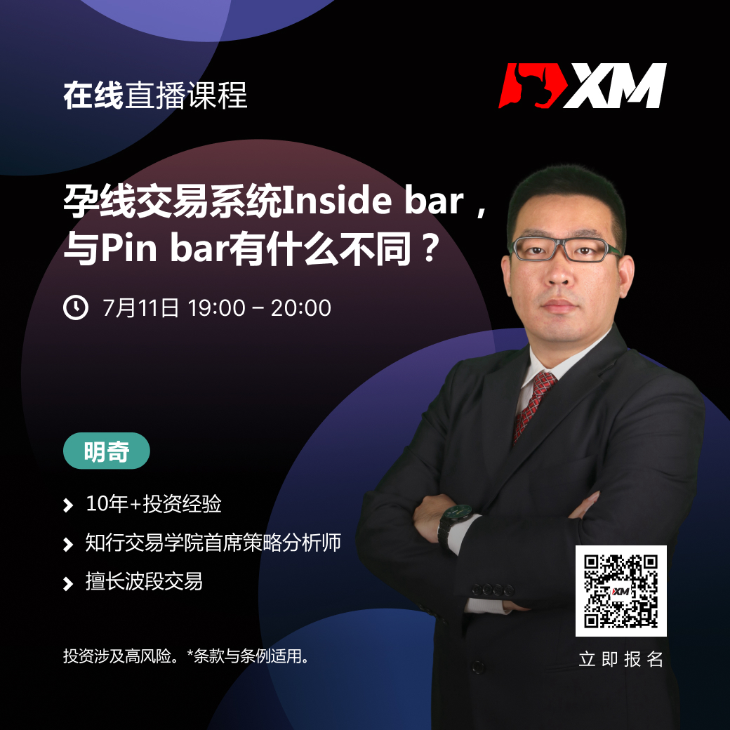 今晚北京时间19:00,明奇老师将在直播间解析pin bar和inside bar之间的区别。