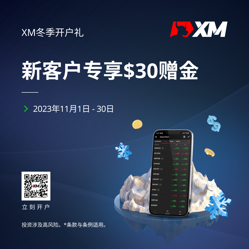 XM冬季开户礼,新客户专享$30赠金
