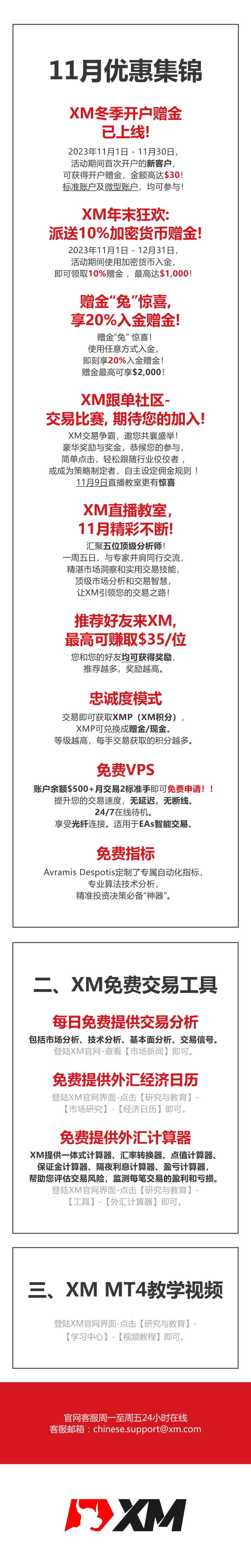 发送邮件至chinese.support@xm.com,邮件内容输入“XM活动手册”,即可领取。