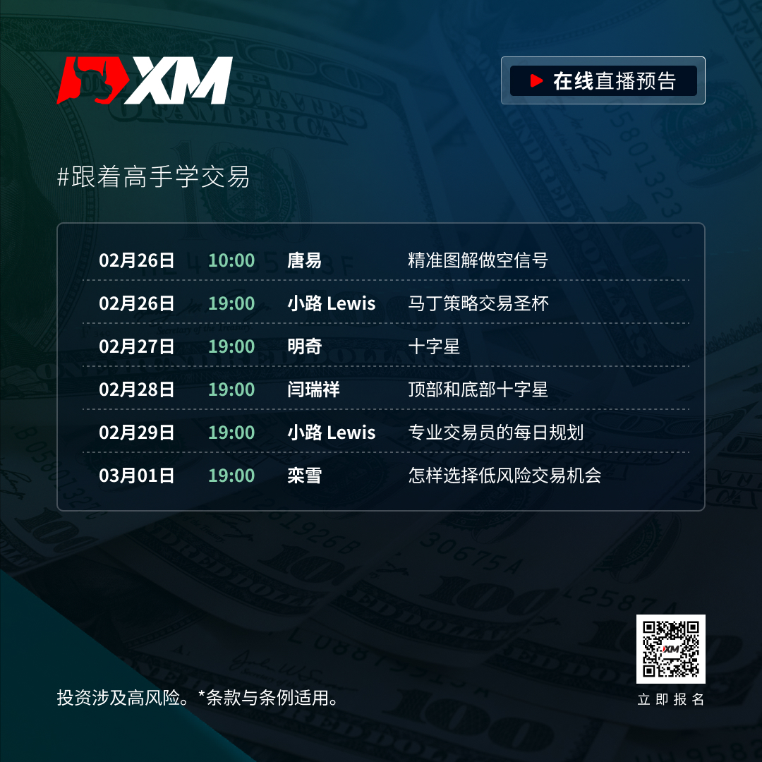 报名参与 XM 在线直播课程,你能与业界顶级讲师一同探索市场的未来方向,实现扭亏为盈。