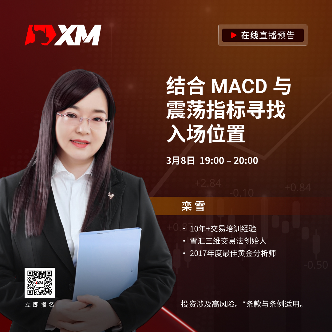 今晚,北京时间 19:00,栾雪老师将分享如何结合MACD与震荡指标寻找入场位置。直播内容包括: