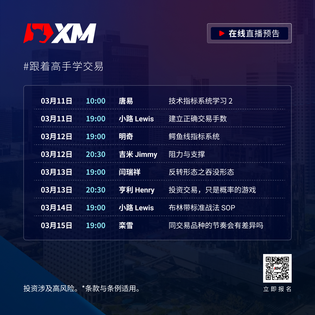 现在是时候行动了! XM 在线直播课程,每周8节课,由老师精心设计的课程内容,确保你能方方面面地掌握交易技巧。