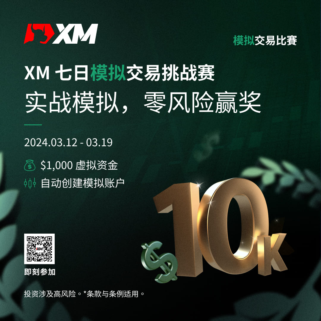 2024年3月12日 至3月19日期间,报名参加XM模拟交易比赛,挑战自我,制定交易策略,瓜分总值 $10,000 美元 现金奖励!