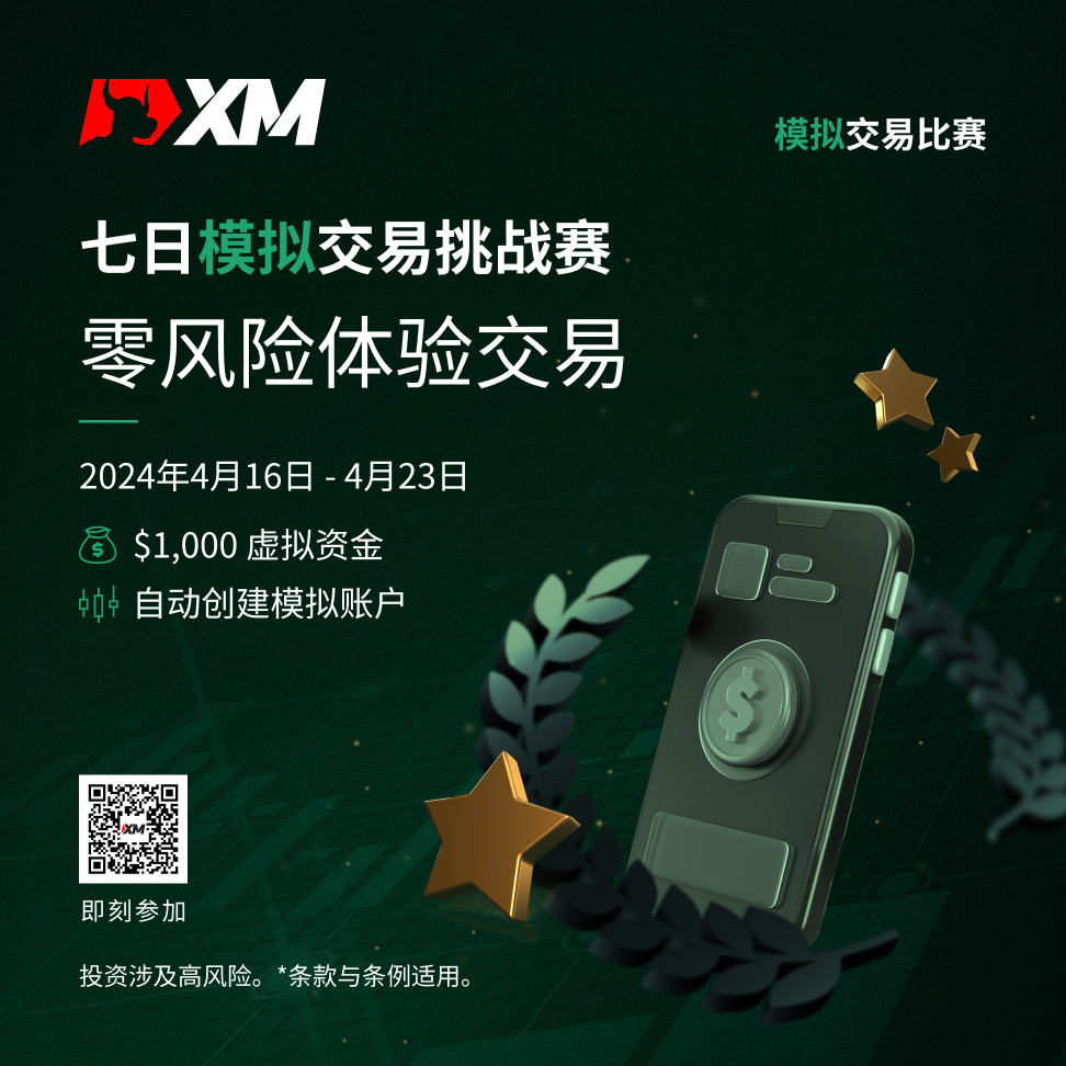 2024年04月16日至04月23日期间,报名参加XM模拟交易比赛,挑战自我,制定交易策略,瓜分总值 $10,000 美元 现金奖励!