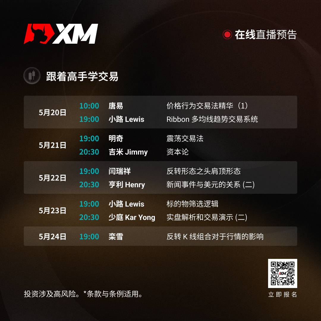 无论是市场新手还是经验丰富的交易员,XM 的在线直播讲座都将为你提供宝贵的交易技巧及市场见解,提高你的交易技能。