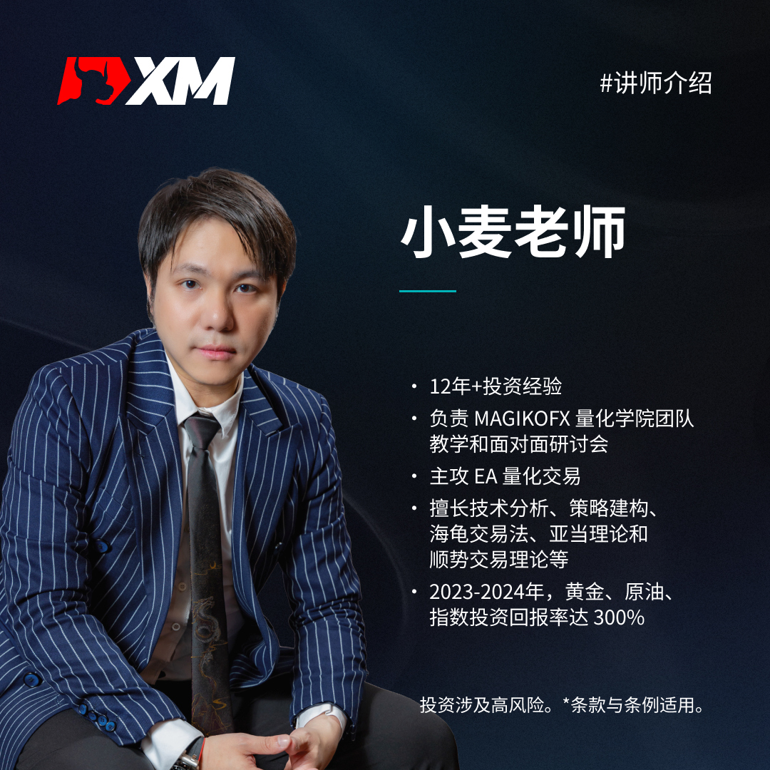 在2023年至2024 年期间,小麦老师在黄金、原油和指数上以量化交易获得了约300%的投资回报率,展现了其卓越的交易能力和成绩。他的加入将为XM团队带来更多专业知识和经验,为学员提供更优质的服务和教育资源。