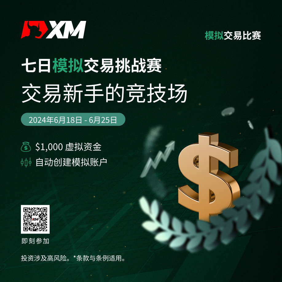 2024年06月18日至06月25日期间,报名参加XM模拟交易比赛,挑战自我,制定交易策略,瓜分总值 $10,000 美元 现金奖励!