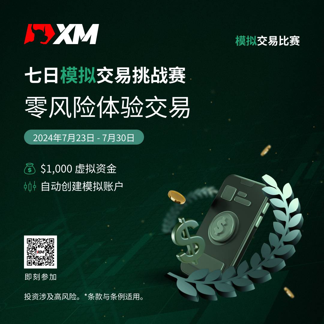 2024年7月23日至7月30日期间,报名参加XM模拟交易比赛,挑战自我,制定交易策略,瓜分总值 $10,000 美元 现金奖励!