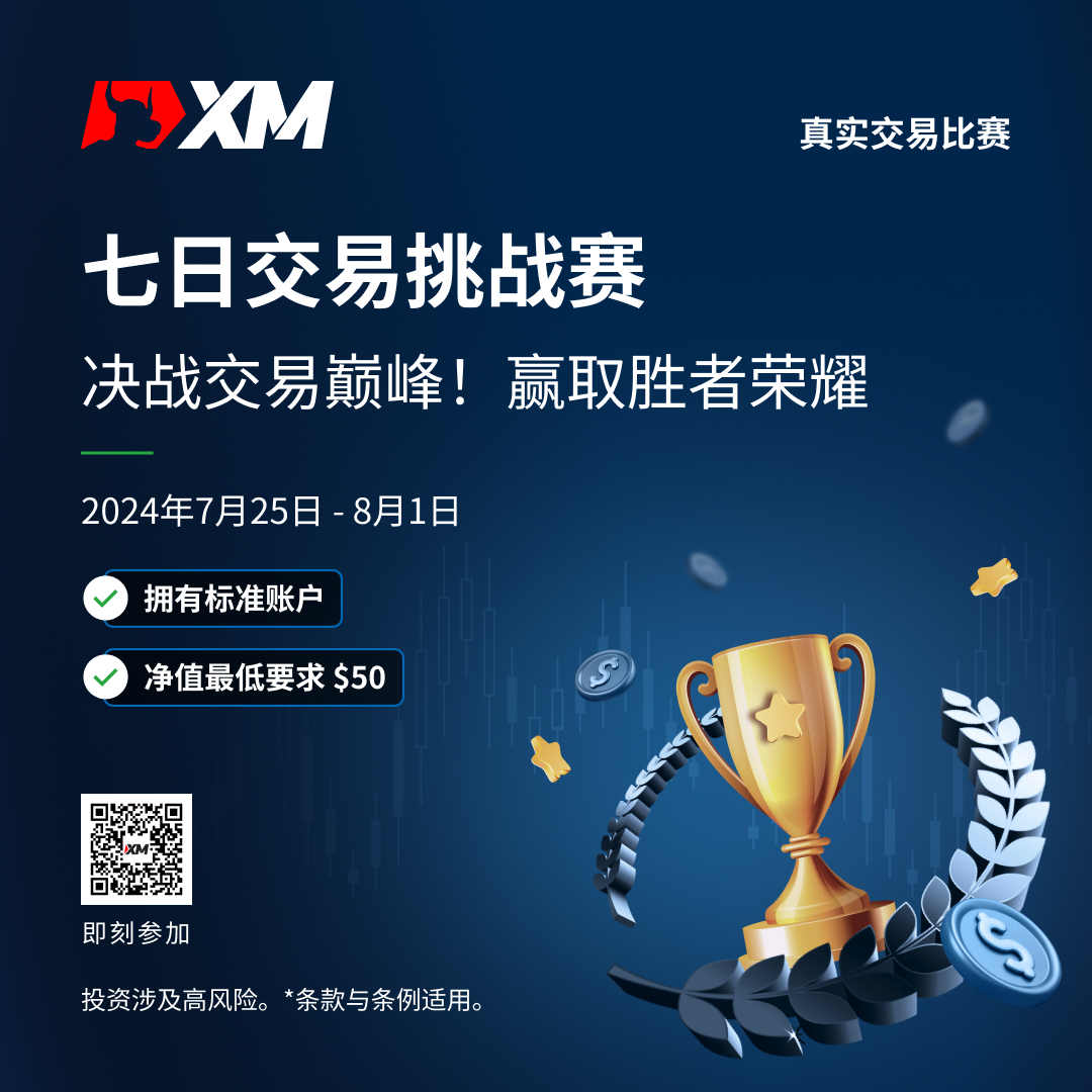 2024年7月25日 至 8月1日 期间,参加为期一周的七日交易挑战赛,与全球交易员一较高下,瓜分总值 $20,000 美元 现金奖励!
