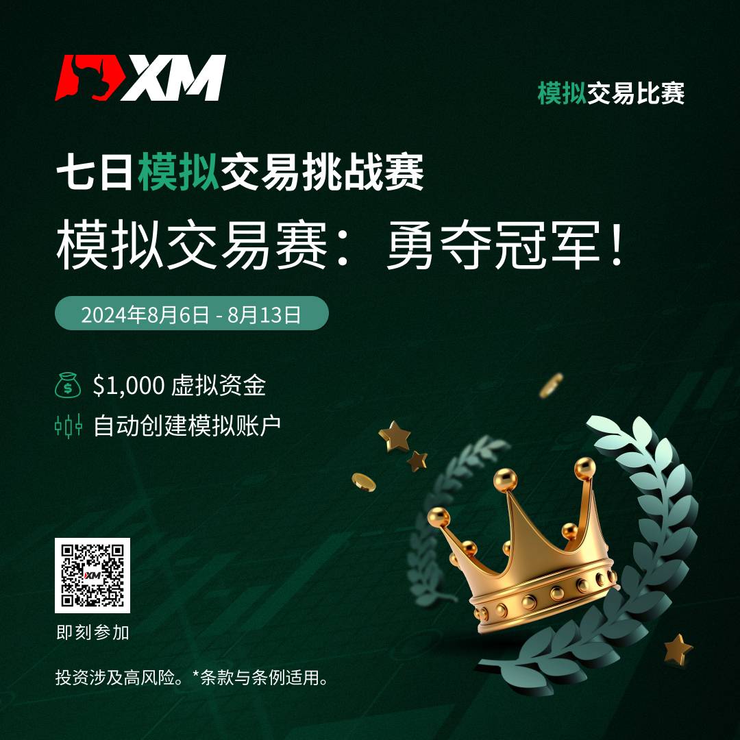 2024年8月6日至8月13日期间,报名参加XM模拟交易比赛,挑战自我,制定交易策略,瓜分总值 $10,000 美元 现金奖励!