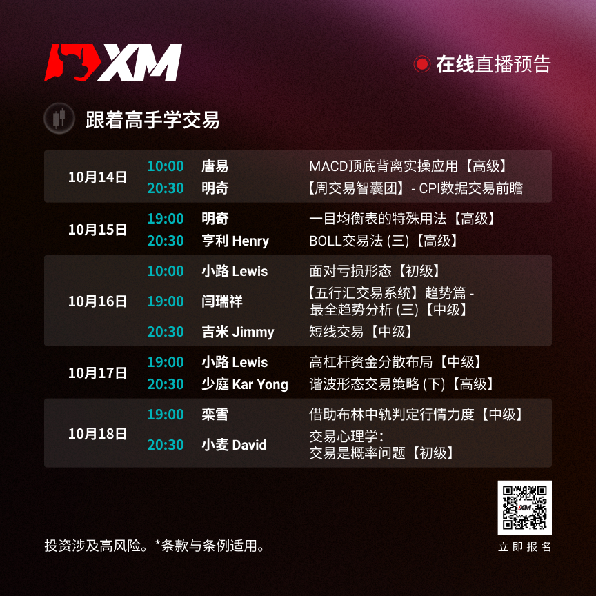 每周一至周五,参加由 XM 金牌讲师们精心设计的投资课程,让你在交易路上更得心应手。