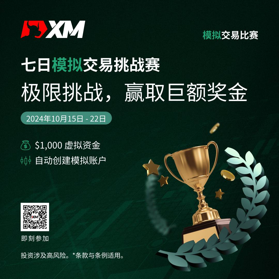 2024年10月15日至10月22日 期间,报名参加XM模拟交易比赛,挑战自我,制定交易策略,瓜分总值 $10,000 美元 现金奖励!