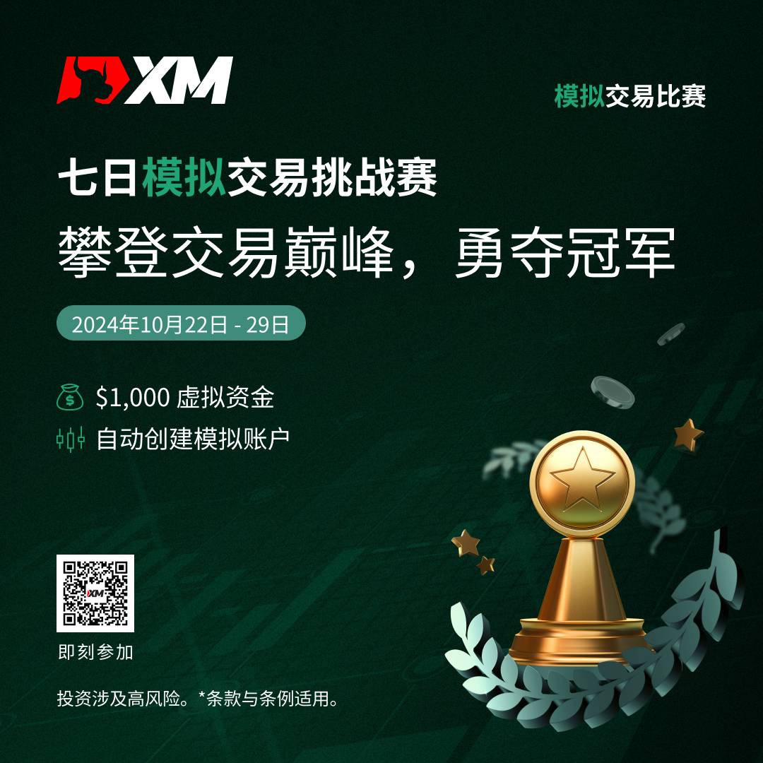 2024年10月22日至10月29日 期间,报名参加XM模拟交易比赛,挑战自我,制定交易策略,瓜分总值 $10,000 美元 现金奖励!