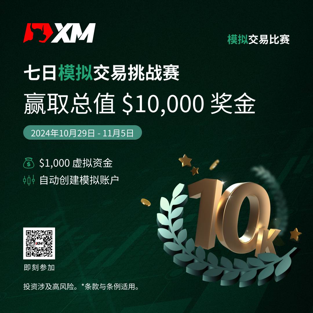 2024年10月29日至11月05日 期间,报名参加XM模拟交易比赛,挑战自我,制定交易策略,瓜分总值 $10,000 美元 现金奖励!
