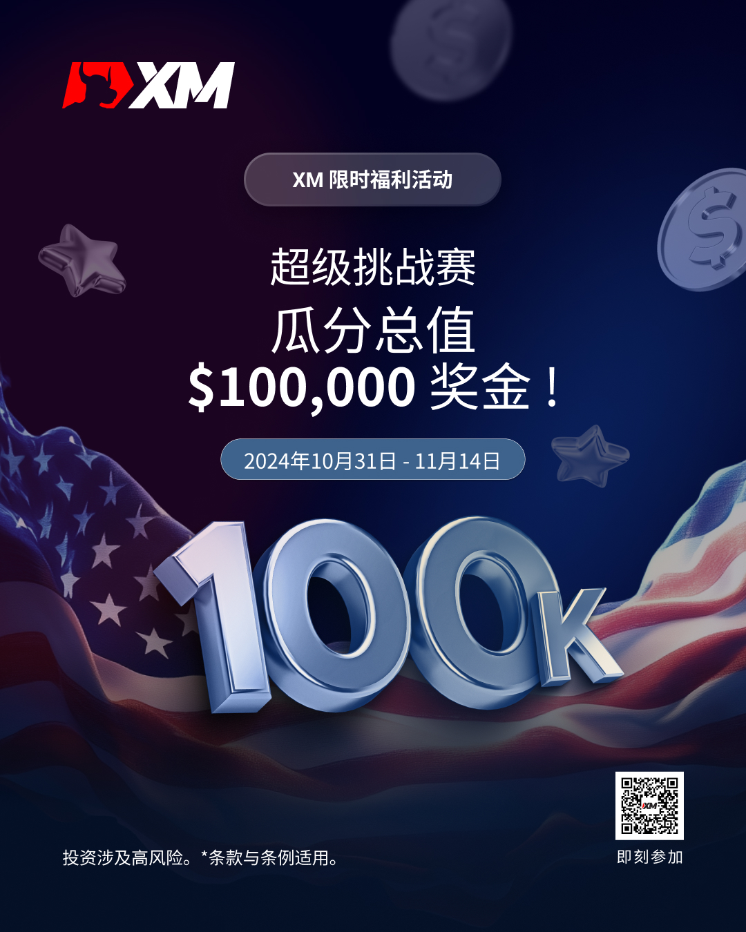 10 月 31 日至 11 月 14 日,报名 XM 超级挑战赛,向着 $100,000 美元奖金出发!无论是经验丰富还是新手交易员,人人都有机会赢取丰厚奖励。