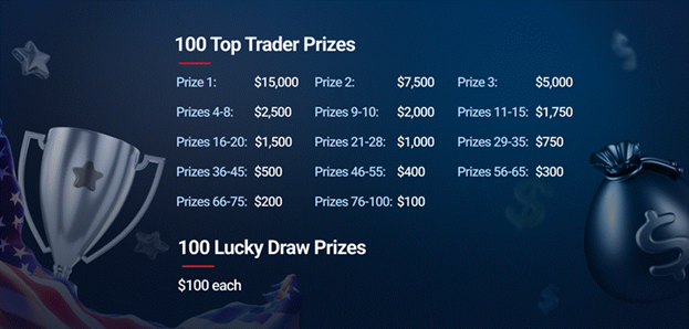 ● 凭借实力或运气赢取现金奖励:名列前茅或幸运的交易员将有机会赢取现金奖励