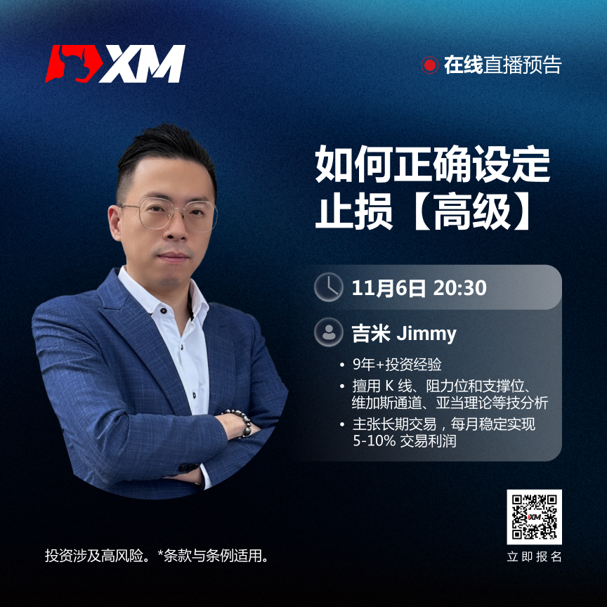 今晚,北京时间 20:30,吉米老师将讲解如何正确设定止损【高级】,课程内容包括: