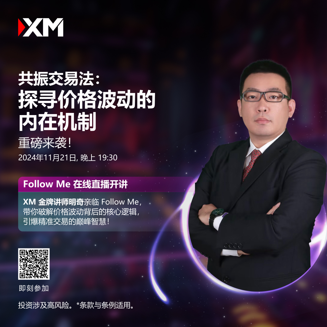 2024年11月21日,北京时间晚上19:30,XM讲师明奇将亲临Follow Me在线直播,为你带来全新的交易智慧。此次课程将聚焦共振交易法,深入探讨价格波动背后的核心逻辑,带你理解市场运行的本质。