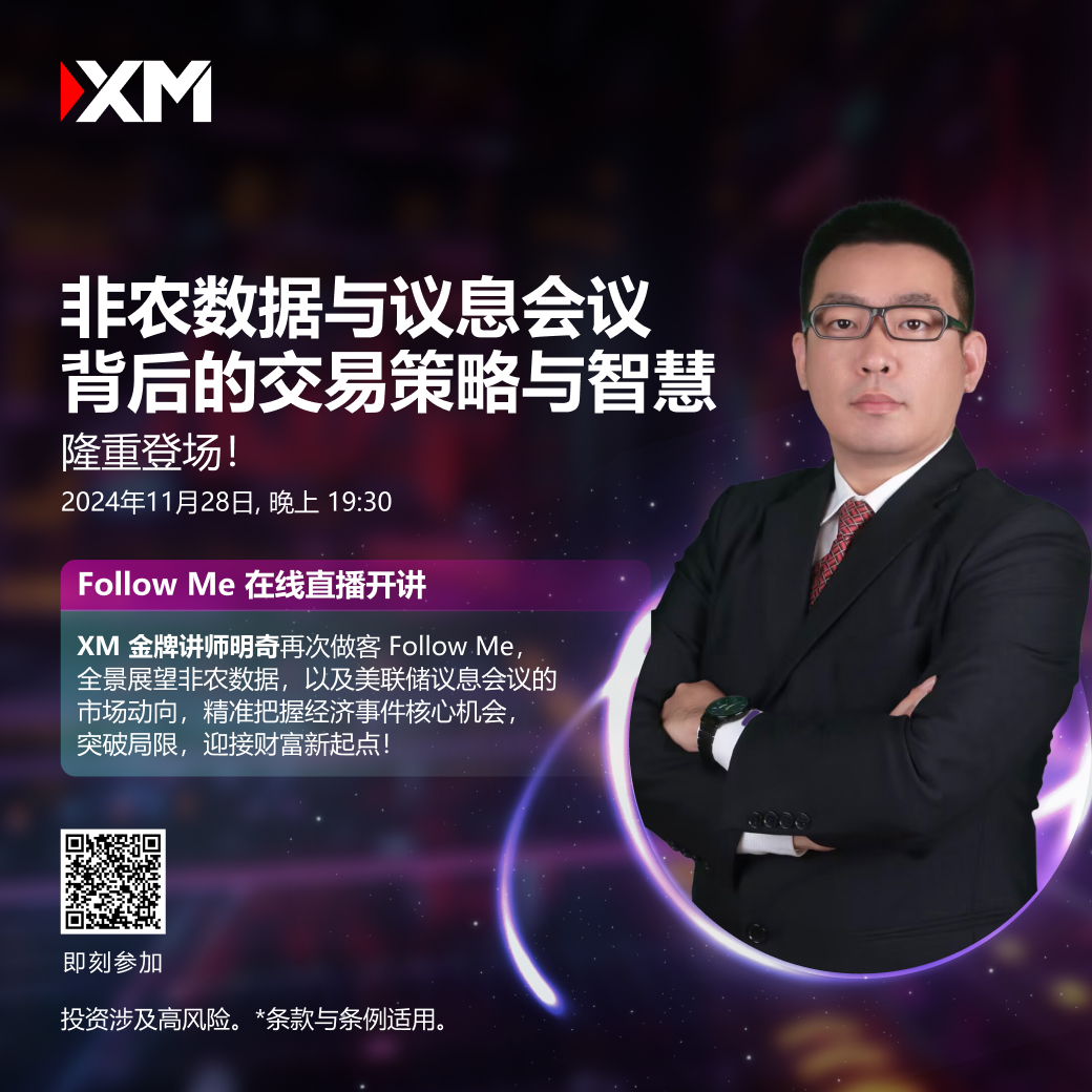 2024年11月28日, 北京时间晚上19:30,XM特约讲师 - 明奇老师将再次做客Follow Me,带你深入解析非农数据和美联储议息会议的市场动向。本次直播将全面展望这些重大经济事件,为你揭开数据背后的市场逻辑,精准把握核心交易机会。