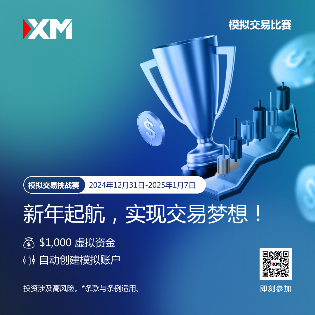 2024年12月31日至2025年1月7日 期间,报名参加XM模拟交易比赛,挑战自我,制定交易策略,瓜分总值 $10,000 美元 现金奖励!