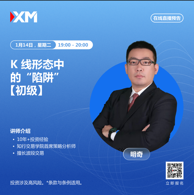今晚,北京时间 19:00,明奇老师将讲解K线形态中的“陷阱”【初级】。