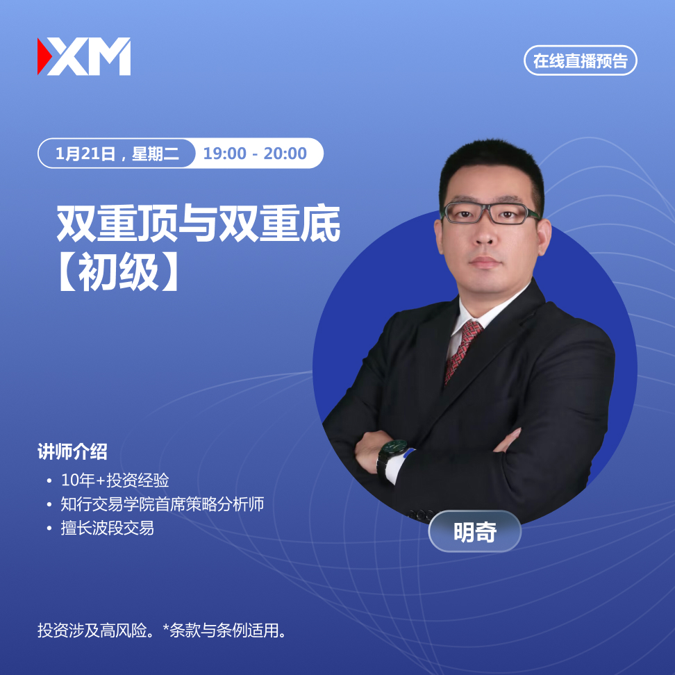 今晚,北京时间 19:00,明奇老师将讲解双重顶与双重底【初级】。