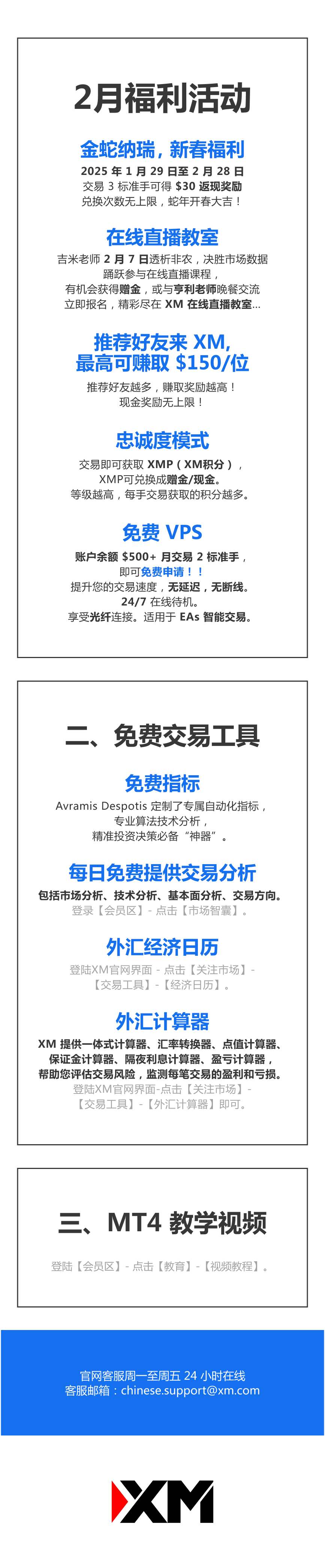 发送邮件至 chinese.support@xm.com ,邮件内容输入“XM 福利活动手册”,即可获取!