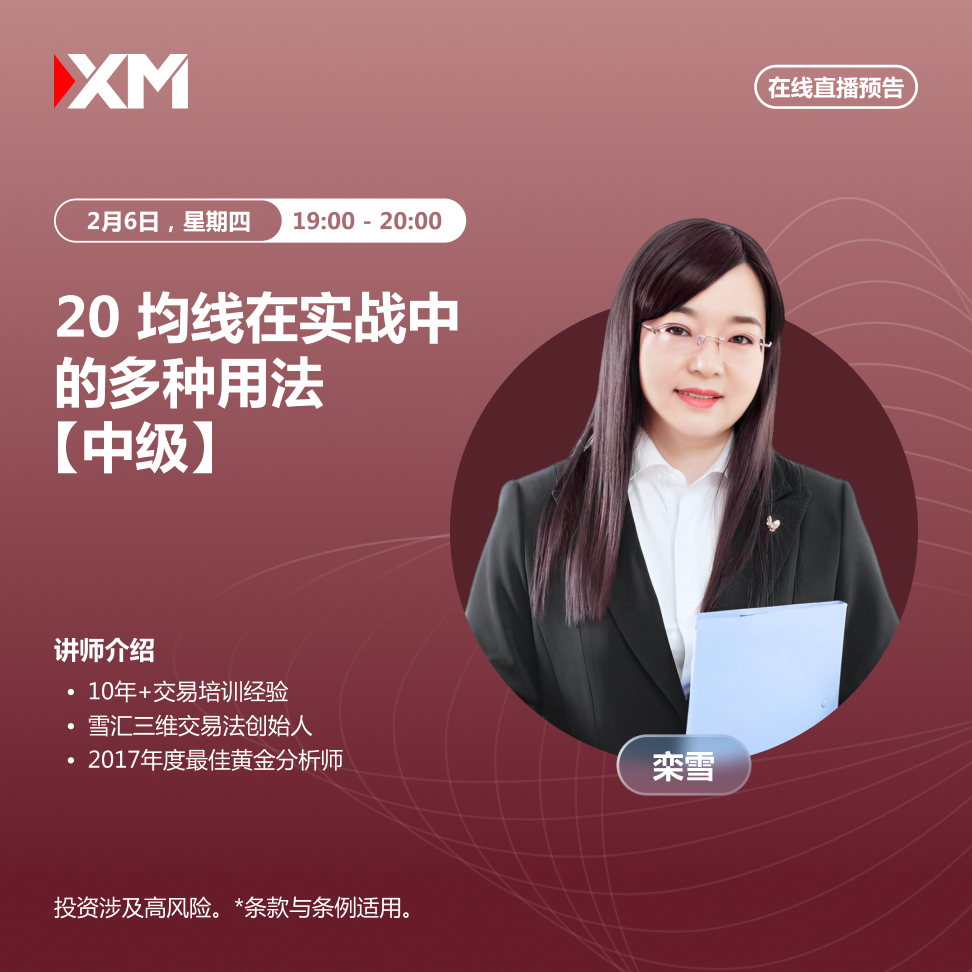 今晚,北京时间 19:00,栾雪老师将讲解 20均线在实战中的多种用法【中级】,在直播中,你将:
