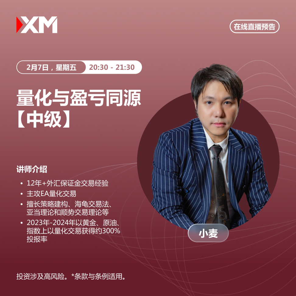 今晚,北京时间 20:30,小麦老师将说明量化与盈亏同源【中级】。直播内容包括: