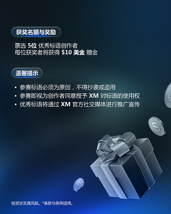 发送你的创意标语至 chn@xm.com,记得附上 MT4/MT5 账户 即可参加!