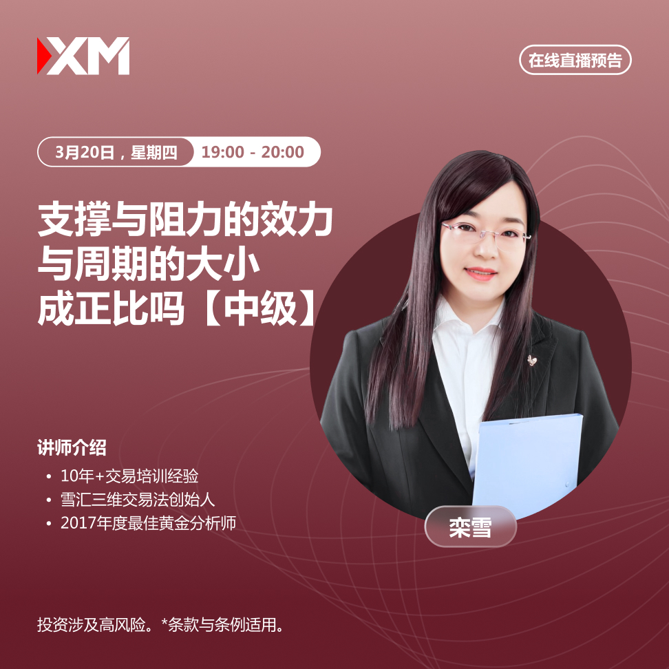今晚,北京时间 19:00,栾雪老师将讲解支撑与阻力的效力与周期的大小成正比吗【中级】,在直播中,你将: