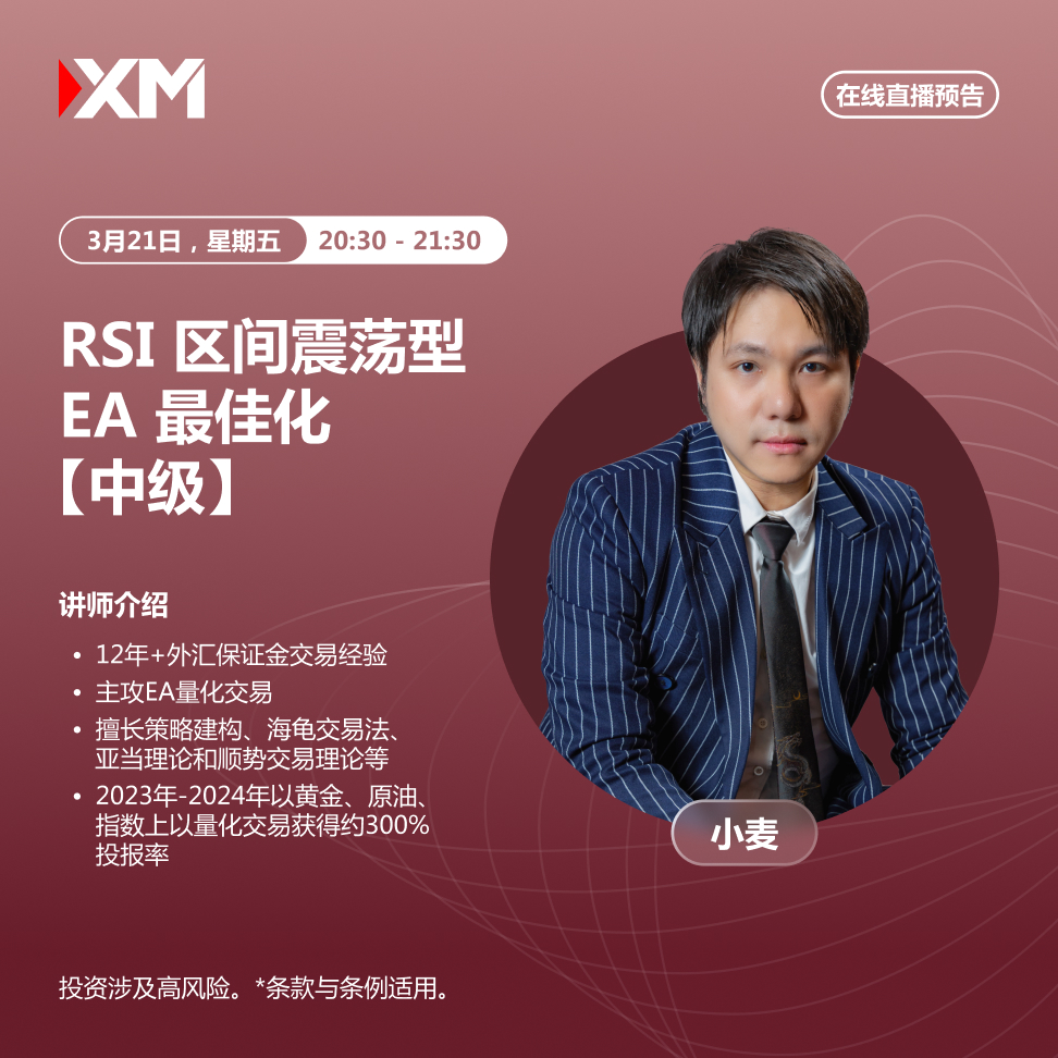 今晚,北京时间 20:30,小麦老师将说明RSI区间震荡型EA最佳化【中级】。直播内容包括: