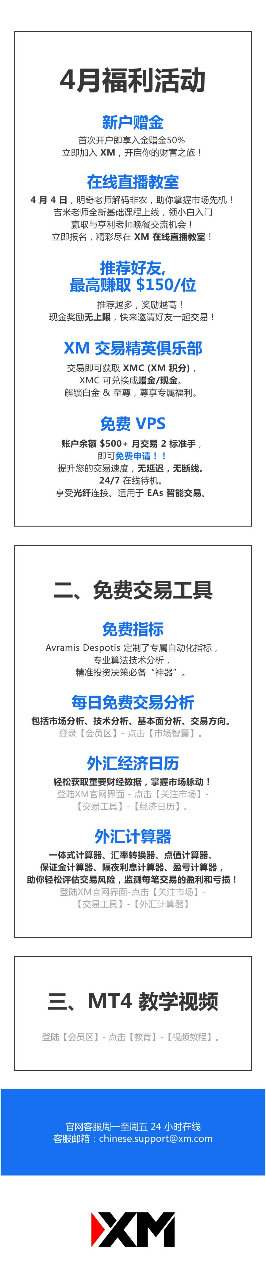 发送邮件至 chinese.support@xm.com ,邮件内容输入“XM 福利活动手册”,即可获取!