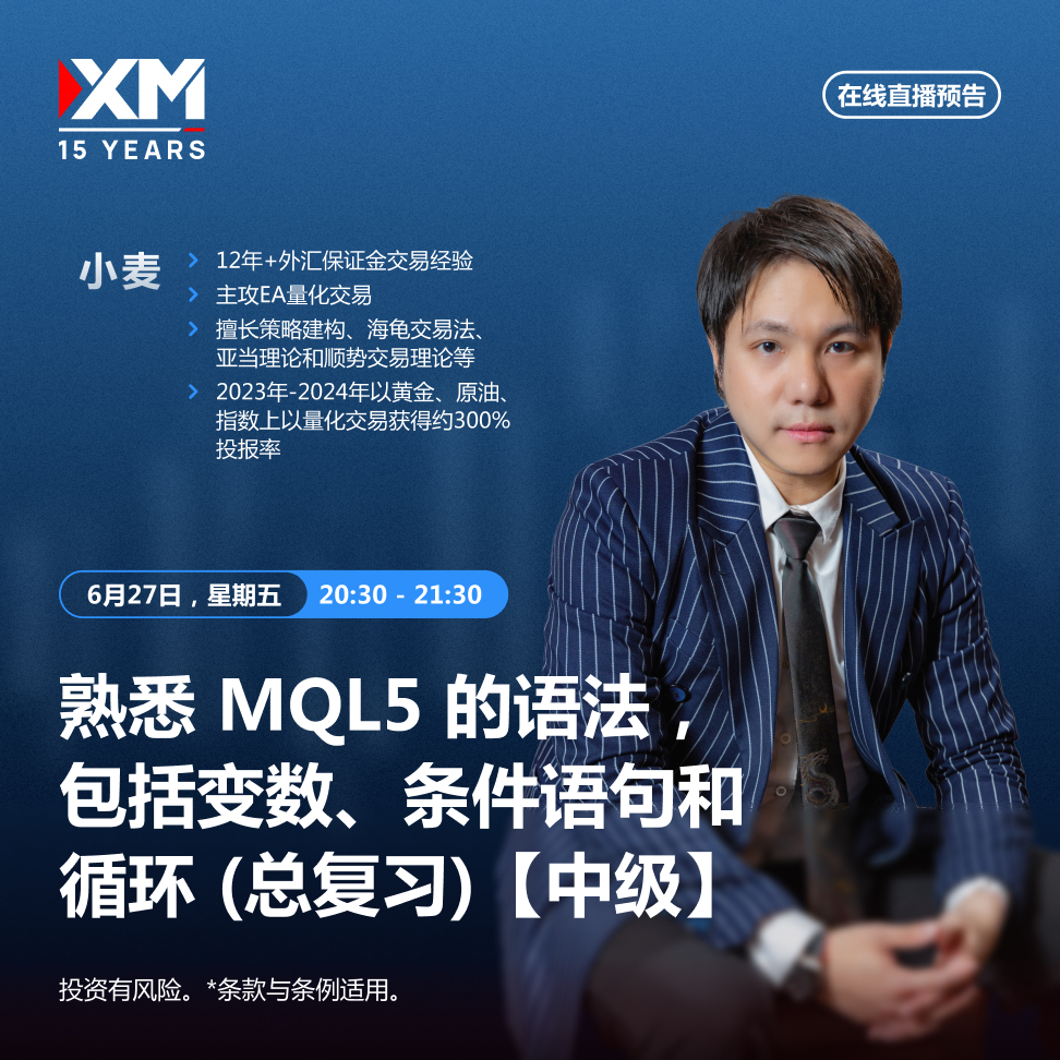 今晚,北京时间 20:30,小麦老师将带你复习熟悉MQL5的最初级语法课程。直播内容包括: