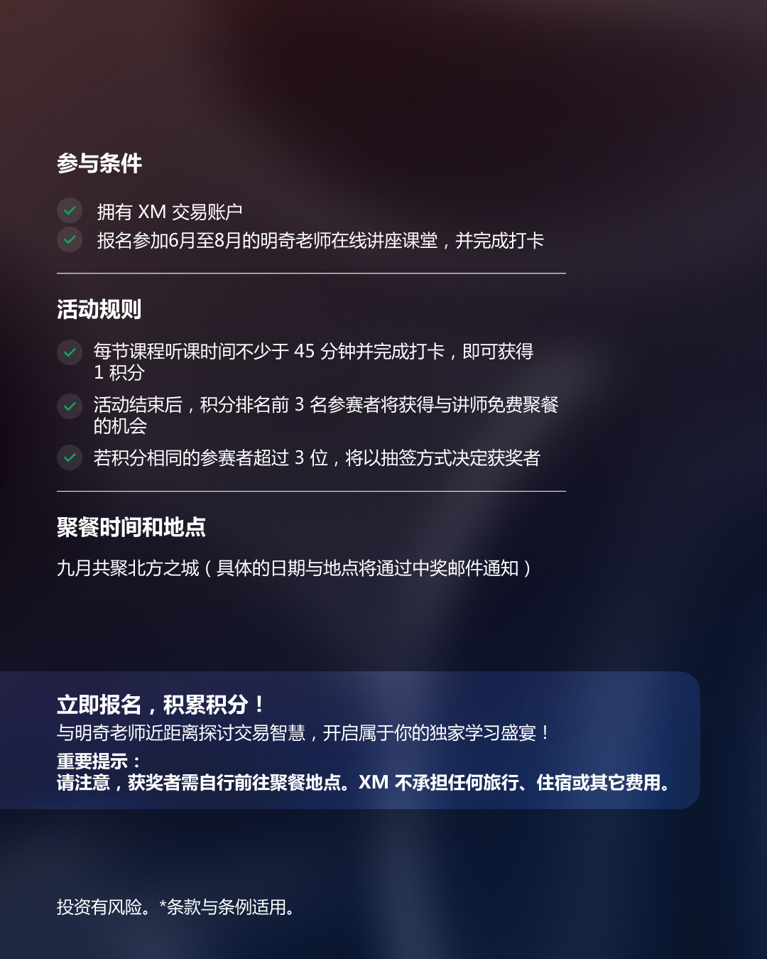· 活动结束后,积分排名前三的学员,将获得与明奇老师共进晚餐的机会