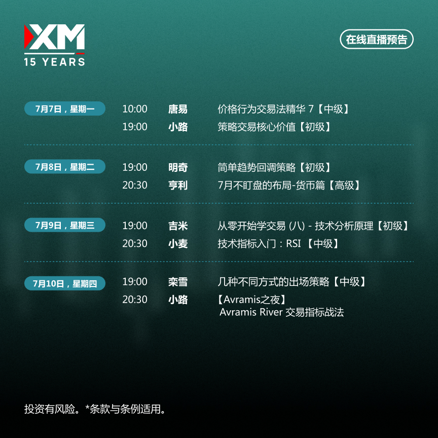 由XM金牌讲师团倾力打造的在线直播讲座,覆盖不同阶段的交易课程,不仅由浅至深讲解金融知识,更结合实盘操作,将理论融入实战。