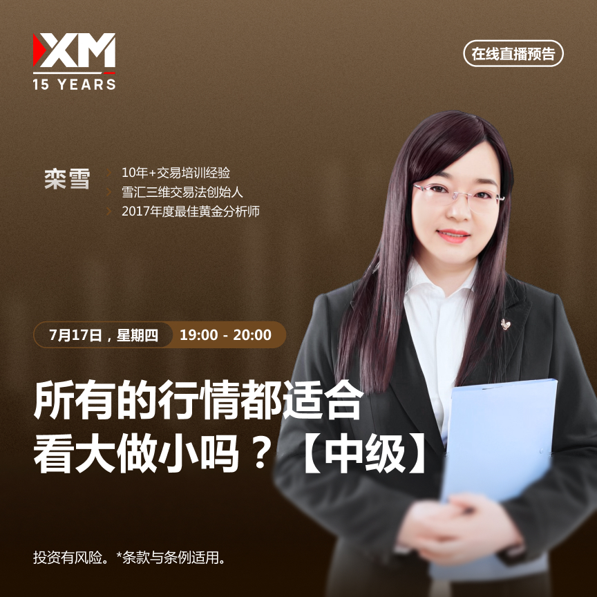 今晚,北京时间19:00,栾雪老师将说明是否所有的行情都适合看大做小?【中级】,在直播中,你将: