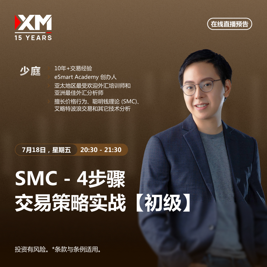 今晚,北京时间20:30,少庭老师将说明SMC - 4步骤交易策略实战【初级】。直播内容包括: