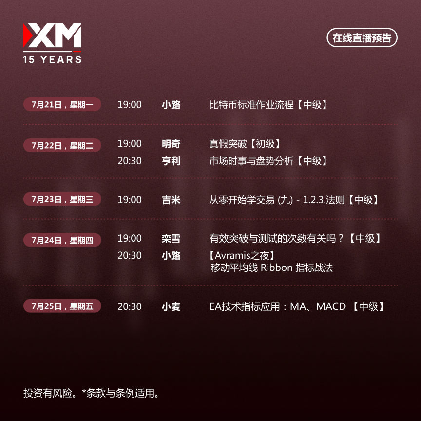 XM为全球交易员打造每日在线直播讲座,周一至周五不间断,带你从入门到进阶,全面掌握交易知识与实战技巧。