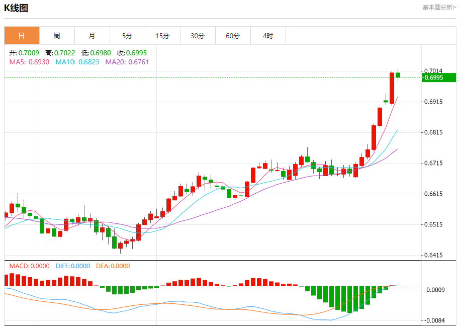 从基本面来看,近期澳大利亚公布的多项经济数据不及预期,澳大利亚政府债券期货价格大幅走高,澳大利亚经济前景不佳,国债收益率明显下降,降低了澳洲联储短期加息可能性,而美国经济数据强劲,年内有望再次加息二次,这将令澳元后市继续承压。