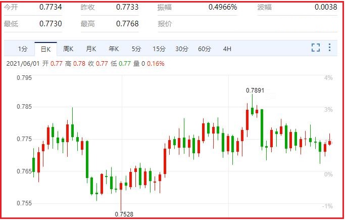美元指数自身的胶着复杂情况却没有一丝好转和改善,甚至还有更加恶劣的情况,也就是说,美元指数陷入胶着震荡的程度已经越来越大,甚至有强行破坏掉下跌格局的可能性,这个情况是不能忽略的,必须要引起足够重视,尤其是在当前这种局面下,美元指数下跌势头一旦被破坏掉,后市该如何走,又会成为一个令人头疼的问题。汇价现报0.7742,涨幅0.10%。