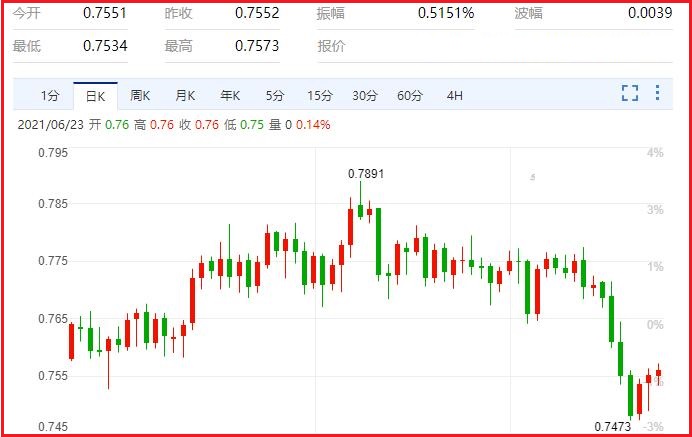 不过,澳洲央行可能会在下一次7月6日的利率决议上制定退出策略,因为官员们在9月份完成第二次政府债券购买计划的1000亿澳元的债券购买后,或考虑未来的债券购买规模,若届时官员们暗示货币政策即将改变,显露出更大的意愿撤出其紧急工具,那么这可能提振澳元/美元。汇价现报0.7564,涨幅0.14%。