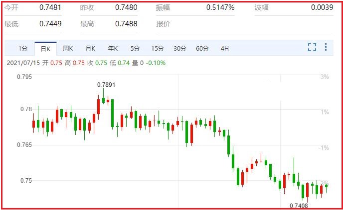 澳洲6月失业率创下逾十年来最低水平,这是该国经济从新冠疫情中明显复苏的又一迹象,这一结果可能会使联储提早收紧货币政策。周四澳洲统计局公布数据显示,6月净新增2.9万个就业岗位,与预估的新增3万个相符。5月为增加11.51万个。这一增幅完全由全职就业岗位增加5.16万个带动。失业率从5月的5.1%降至4.9%,创2010年12月以来最低,延续从去年7月创下7.5%高点后的复苏势头。当时旨在控制疫情扩散而实施的封锁举措拖累澳洲经济陷入衰退。凯投宏观分析师Marcel Thieliant说:“结果是薪资增长应很快开始加速,促使澳洲联储在2023年初之前收紧政策。”澳洲联储去年三次降息至0.1%的纪录低位,并宣布了一项大规模购债计划,以帮助降低借款成本。汇价现报0.7476,跌幅0.08%。