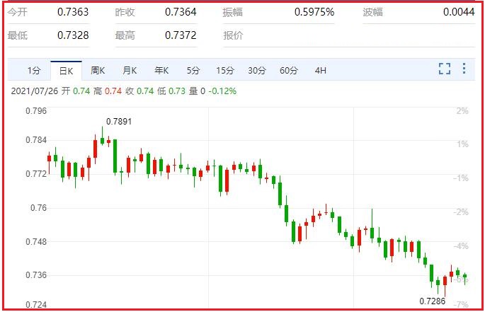 1.下跌趋势复苏将推动澳元/美元清除0.7290一线。日线收盘价如收于区间0.7435-40之上才有望中和短期的抛售压力、打破近期一系列更低的高点和低点的势头;