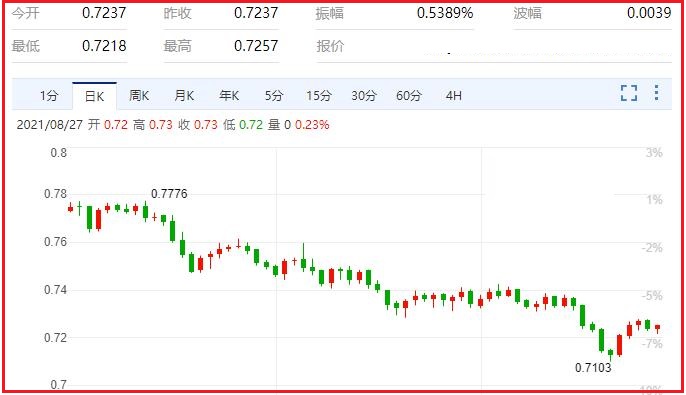 2.作为大宗商品货币对,澳元/美元正在此前支撑区间转化的阻力区间,如果不能有效突破该区间,则可能会为再次下跌打开大门,下方目标看向0.7000;